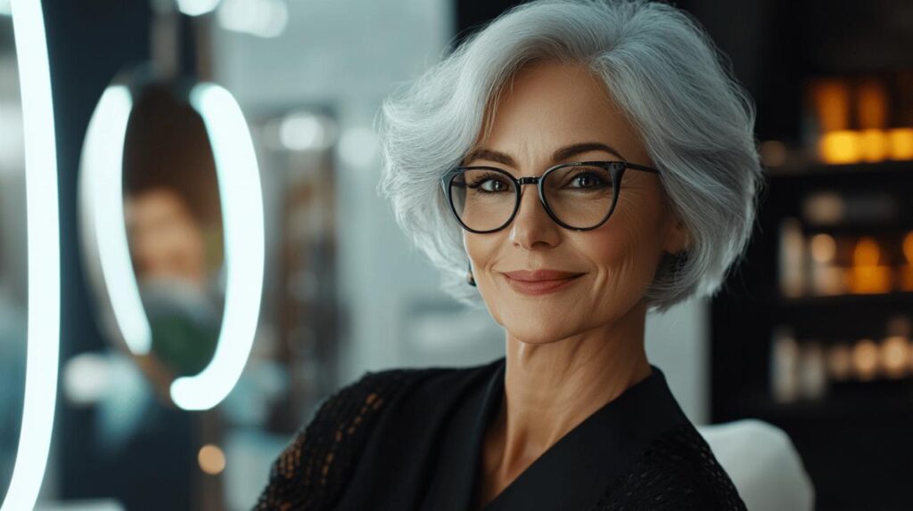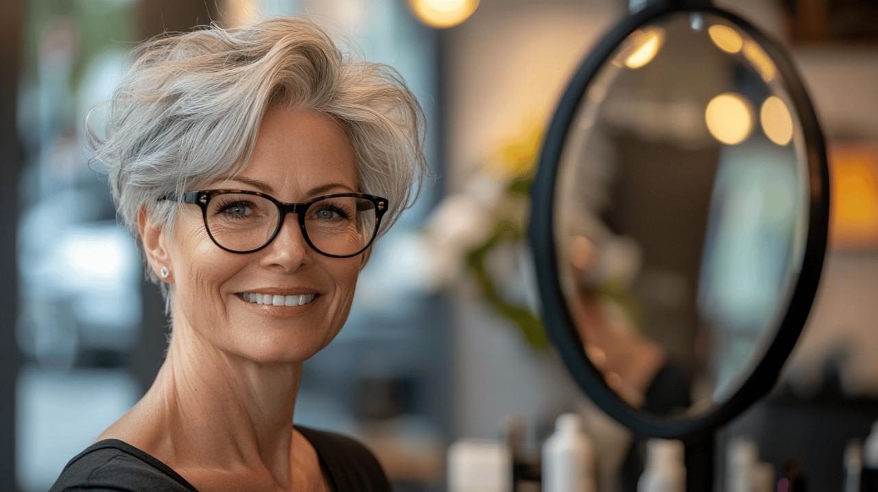 Les techniques de coiffage s'adaptent à la nature des cheveux matures. Les brushings ondulés et les dégradés apportent du volume et de la légèreté à la chevelure. Pour les femmes portant des lunettes, une frange légère adoucit les traits du visage. Les mèches ondulées floues créent un effet naturel et moderne, tandis que les carrés courts ou les coupes pixie offrent une allure élégante. L'utilisation d'une brosse adaptée et d'un sèche-cheveux à température modérée préserve la santé capillaire.